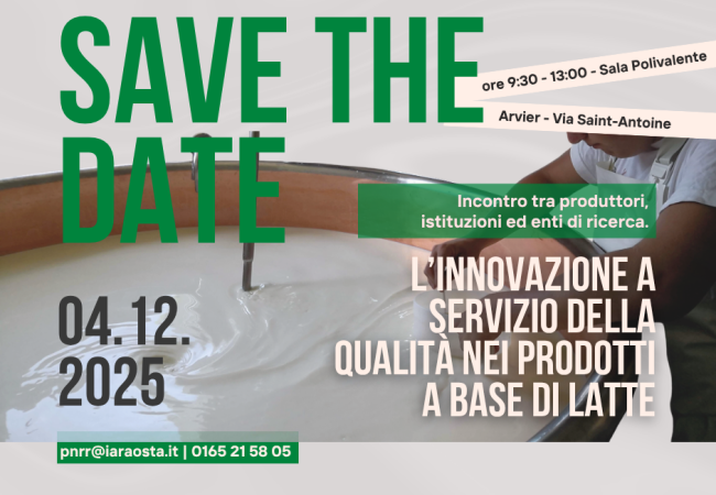 Un incontro tra produttori, istituzioni e ricerca scientifica il 4 dicembre ad Arvier Il prossimo 4 dicembre, alle ore 10:00, la Sala Polivalente di…